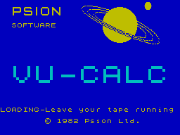 Pocket calculators have become a powerful and indispensable tool to many, though they only work out and display one number at a time. They are useful because there are many things in life that are well described by a single number. There are many more things, however, which can be described more fully and completely with a table or an array of numbers organised in an ordered way. VU-CALC is a program for calculating and displaying tables of numbers and names.You start with an empty table or grid composed of boxes and arranged in rows and columns.With a simple set of commands you can invoke calculator - like formulae which link one box to another or one row to another or one column to another so that the computer can calculate a whole table in a few seconds.You can also enter data or names into particular boxes and by simply changing one or more parameters, tables for different situations can be re - evaluated and displayed almost immediately.